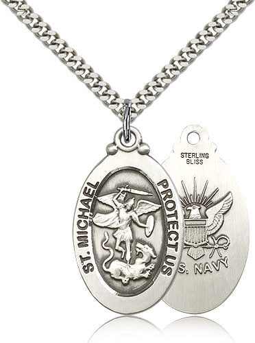 Sterling Silver St. Michael the Archangel Navy Medal with Chain Pendant