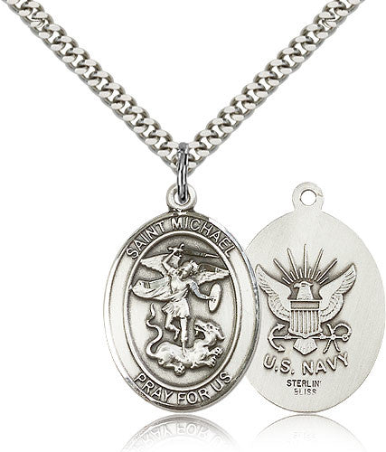 Sterling Silver St. Michael the Archangel Navy Medal with Chain Pendant