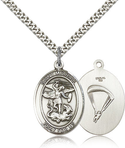 Sterling Silver St. Michael the Archangel Paratrooper Medal with Chain Pendant