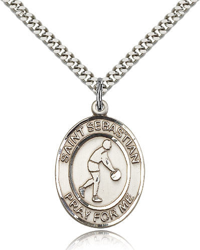 Sterling Silver St. Sebastian Basketball Medal with Chain Pendant