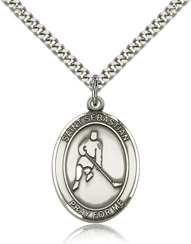 Sterling Silver St. Sebastian Hockey Medal with Chain Pendant