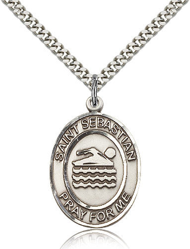 Sterling Silver St. Sebastian Swimming Medal with Chain Pendant