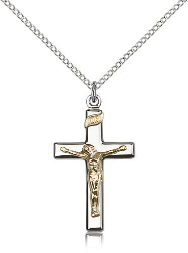 Sterling Silver Two-Tone Crucifix Medal with Chain Pendant