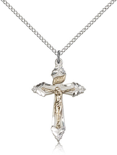 Sterling Silver Two-Tone Crucifix Medal with Chain Pendant