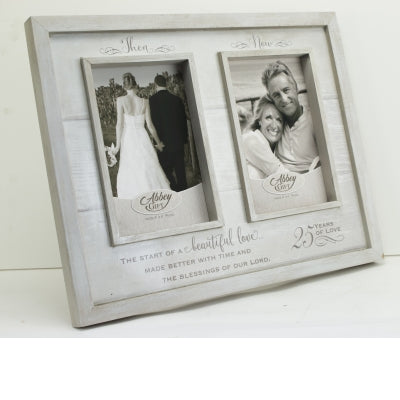 This frame is the perfect way to celebrate 25 years together! Frame features a rustic look and holds two 4" x 6" photos. Hangs or stands.