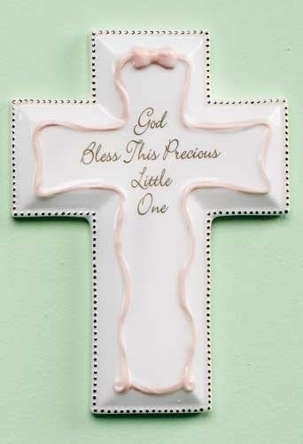 Celebrate the new baby in your life with this porcelain wall cross. Also available with blue or white accents.
